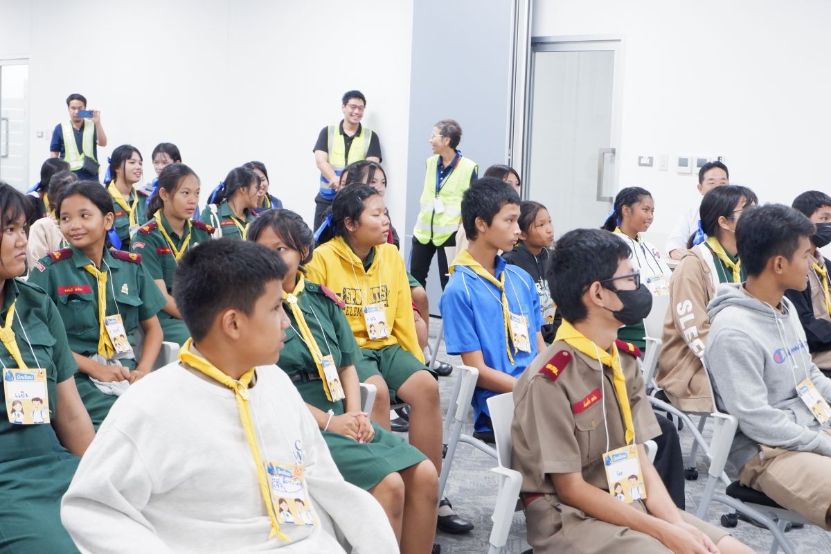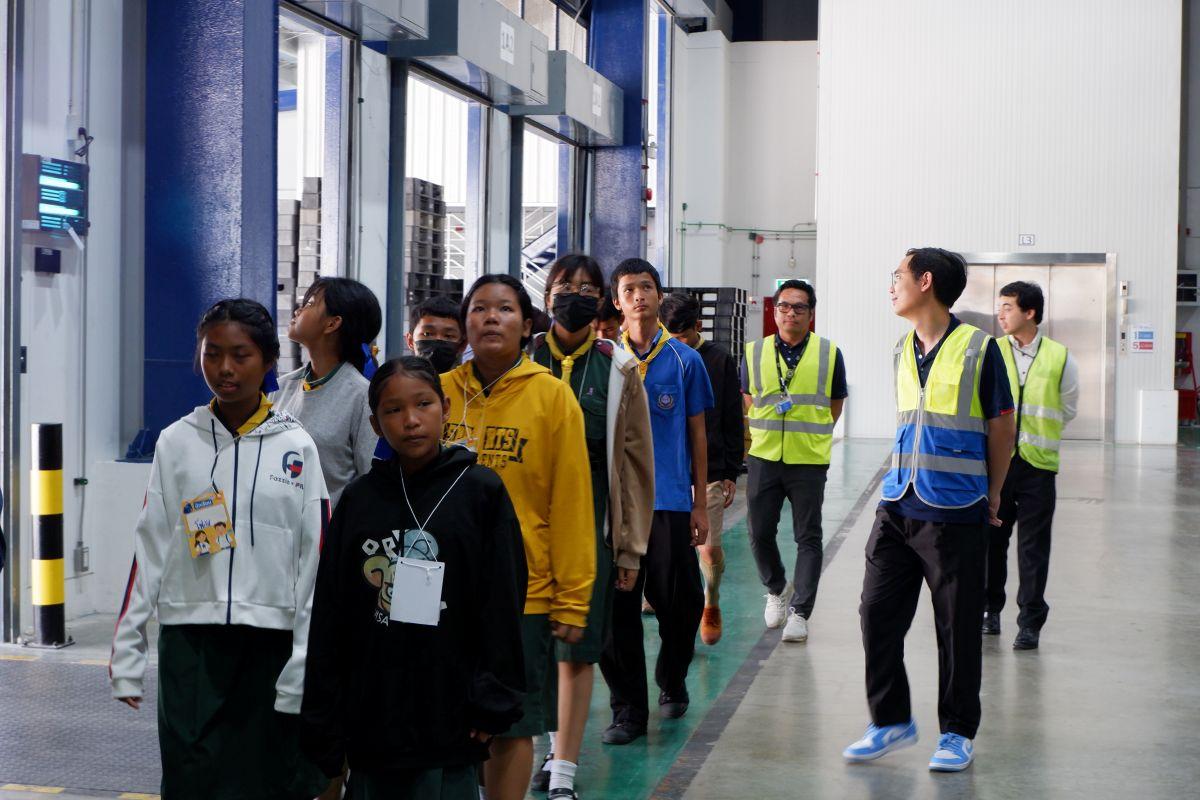 Students from Wat Mongkol Nimit School were taken on a visit to a warehouse to gain knowledge and participate in career guidance activities related to the warehouse and logistics business.